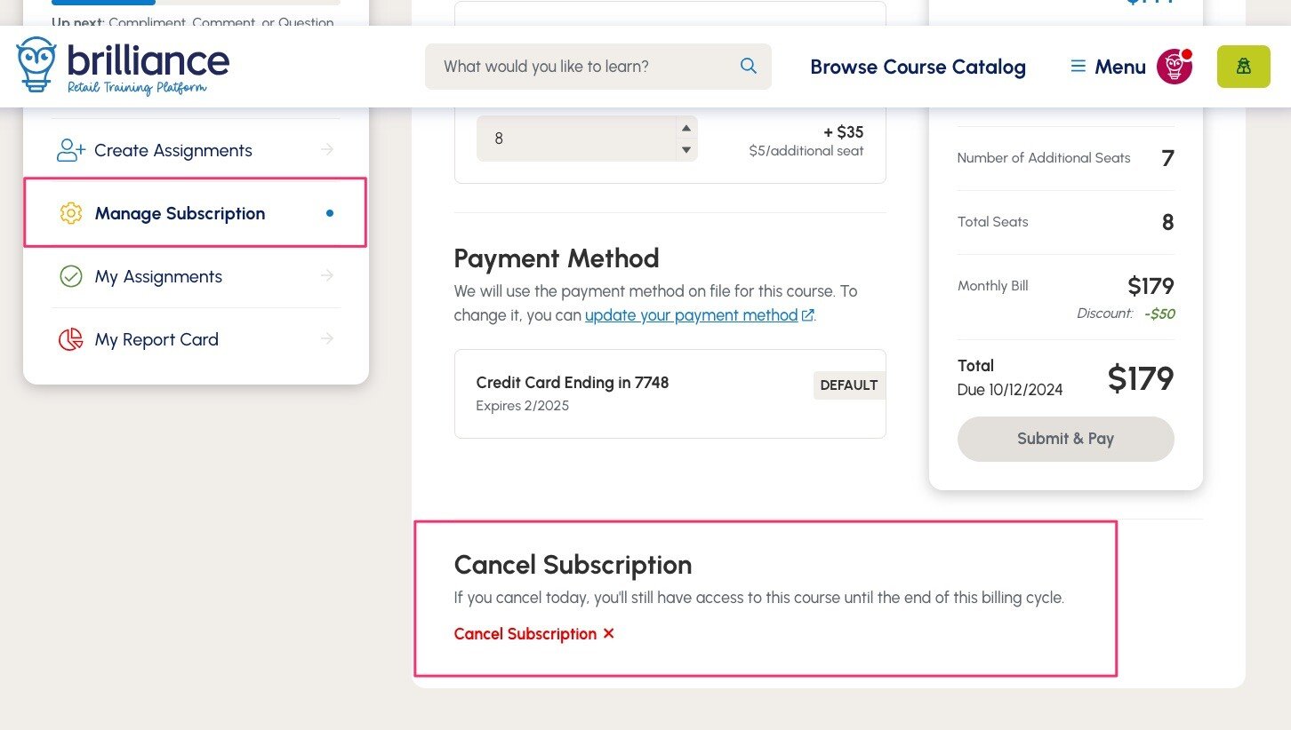 It’s easy to cancel a recurring subscription. Go to the Course.
